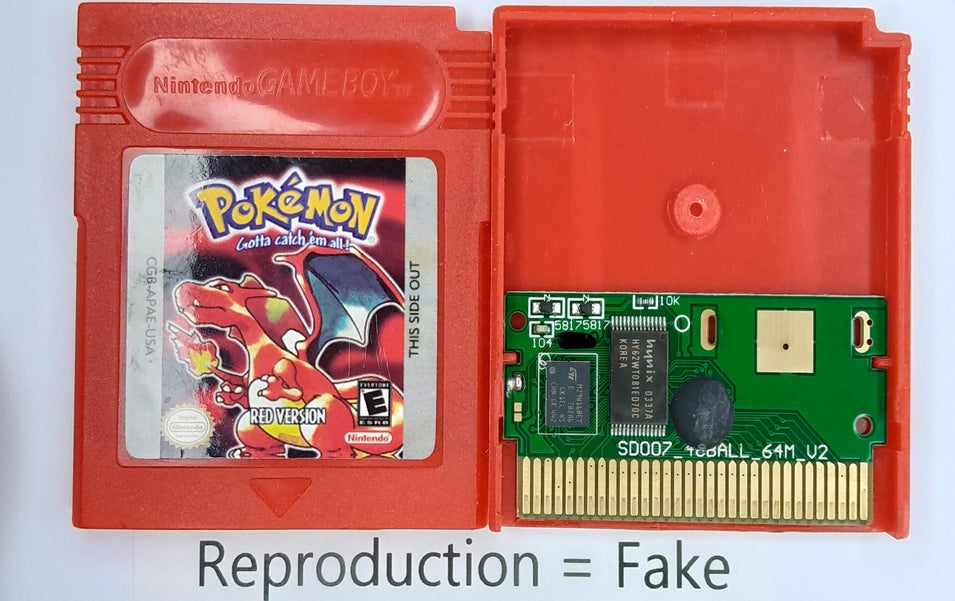 - The overall looks of labels and the artwork. The 2 Pokémon red versions are really easy to spot as fake because the original look so much different. You have to do some research but when you know how the real deal looks, you won't be fooled with these.